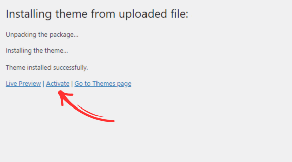 Step 5: Once the installation is complete, click Activate, and you will be redirected to the Themes page with ABC activated.