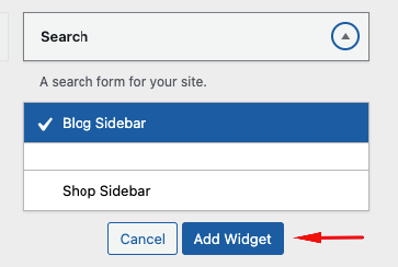 • Alternatively, click on the widget, select a widget area, and click “Add Widget”.