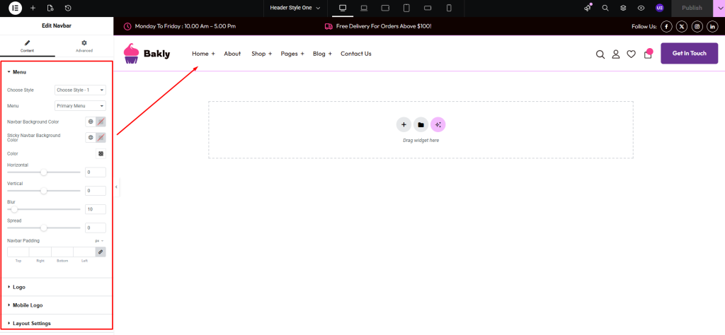 Menu Styling: Theme allow additional customization, such as styling under Theme Options.